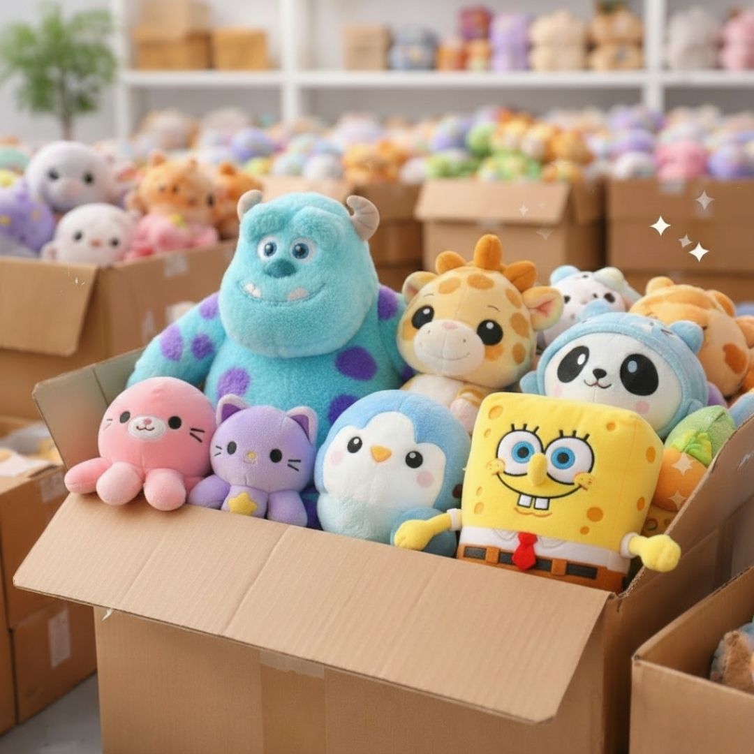Peluches de catálogo con modelos en tendencia, diseñados para alta rotación en tiendas y negocios retail.